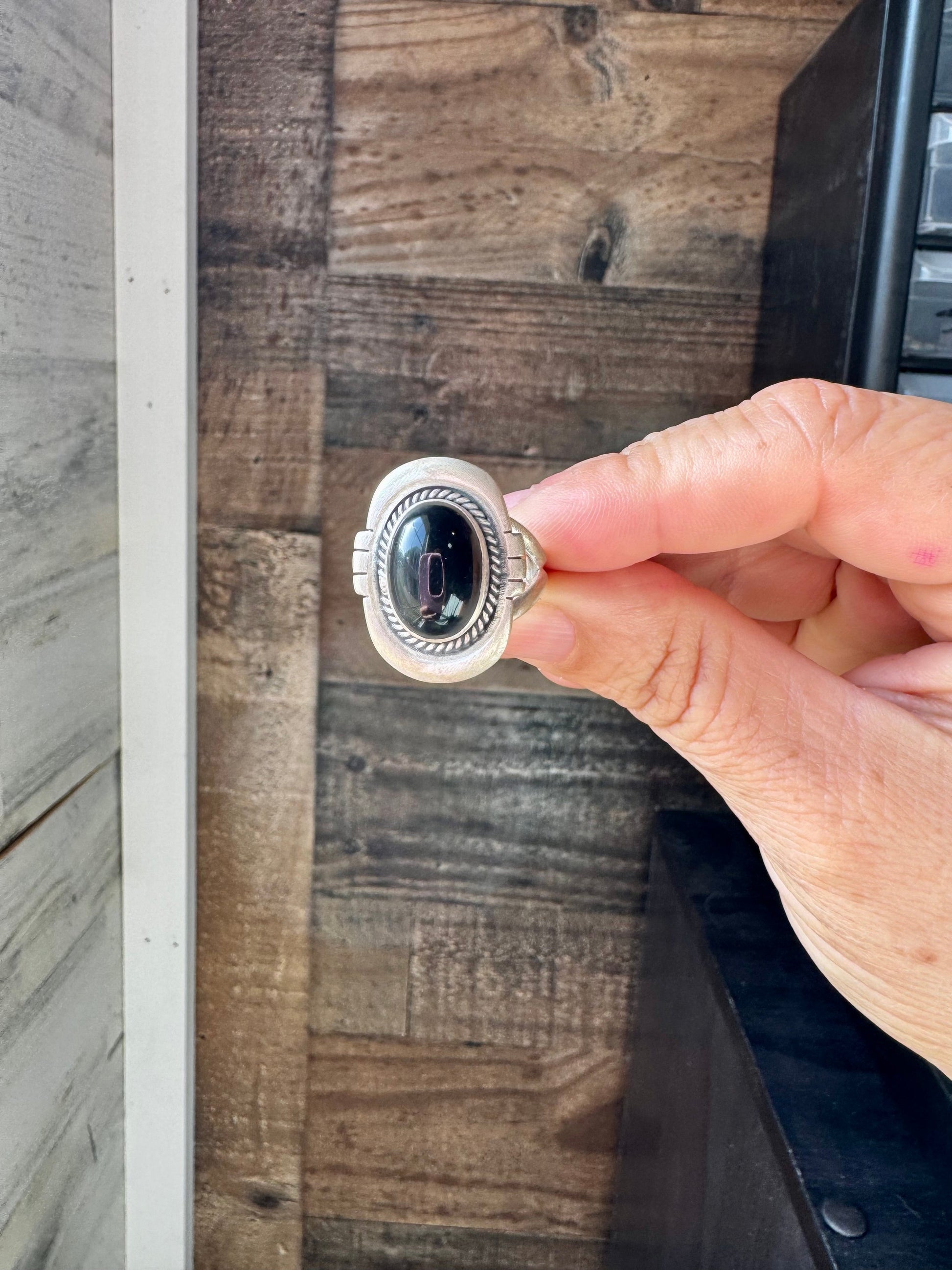 Black Onyx Oval Ring – Sterling Silver – Sizes 7.5 & 8